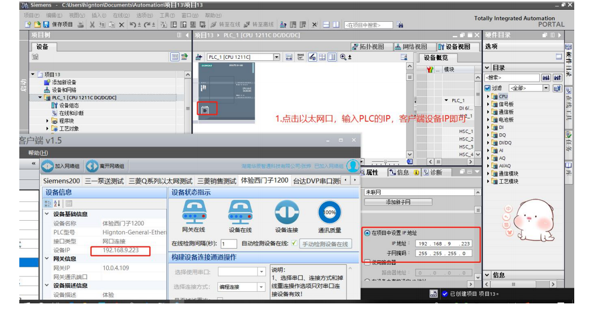 3.點擊組態(tài)界面,以太網(wǎng)接口,輸入PLC的IP地址(客戶端的設(shè)備IP即是,如圖192.168.9.223)。