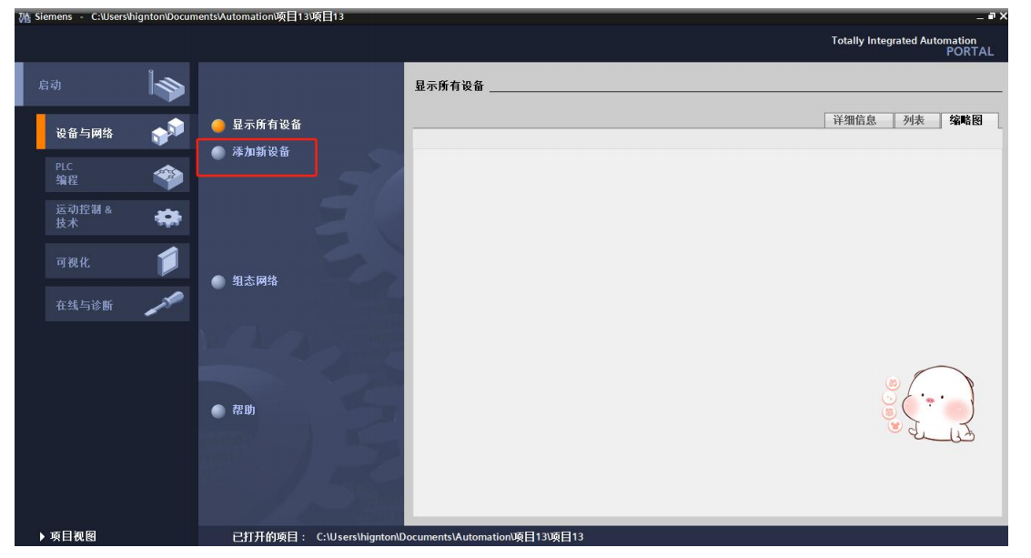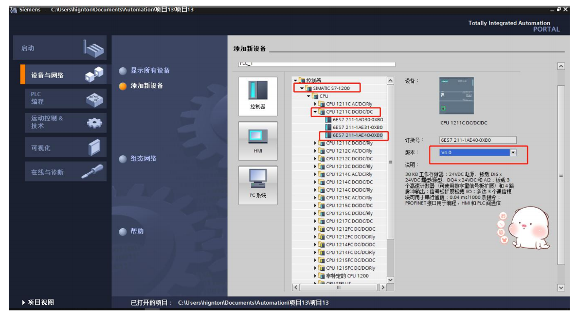 2.打開博圖軟件,新建項目、添加設(shè)備,找到對應(yīng)設(shè)備系列、型號、版本等,添加。
