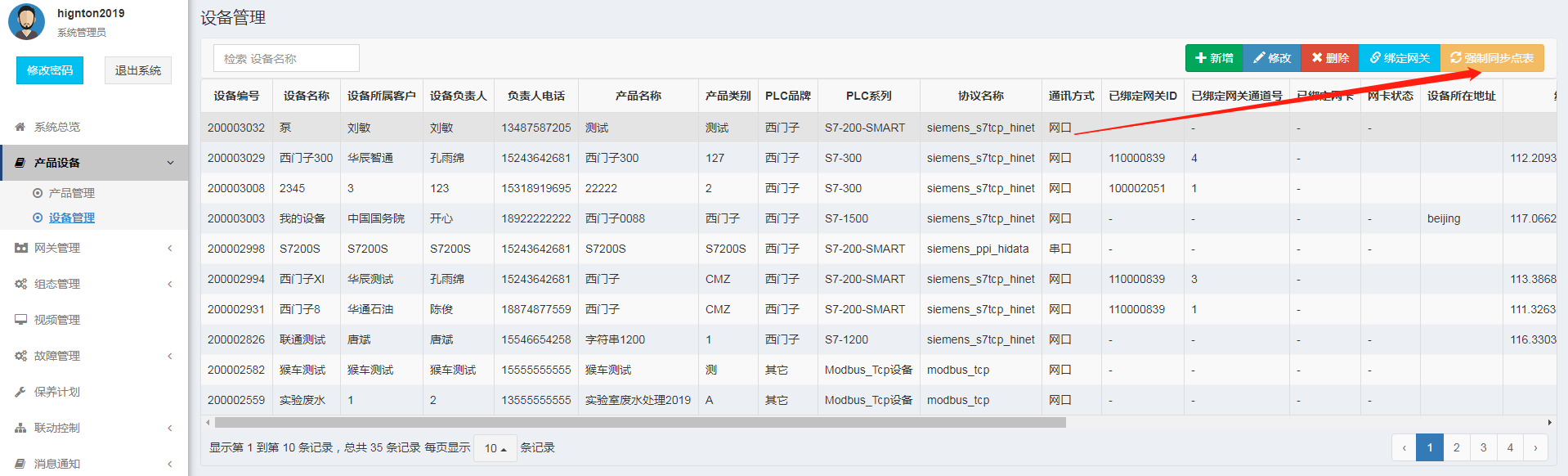 1. 是否強制同步點表,以思普云平臺采集數據為例,思普云平臺的設備管理處,選擇設備點擊【強制同步點表】。