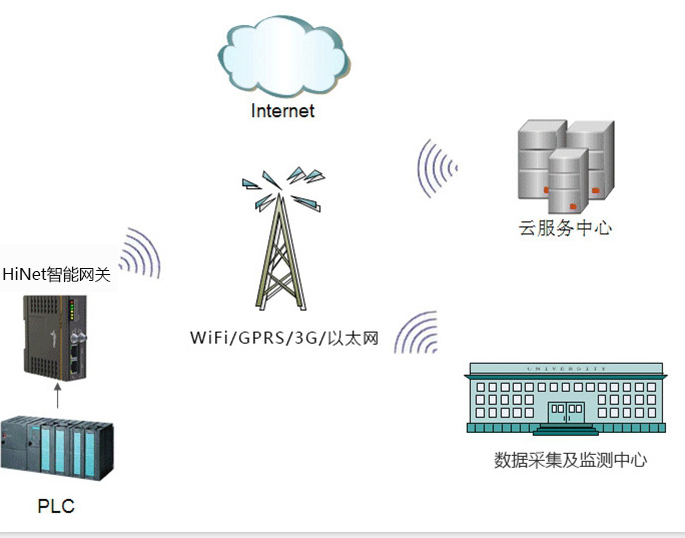 網(wǎng)絡(luò)傳輸層由各種網(wǎng)絡(luò),包括互聯(lián)網(wǎng)、廣電網(wǎng)、網(wǎng)絡(luò)管理系統(tǒng)和云計(jì)算平臺(tái)等組成,負(fù)責(zé)傳遞和處理感知層獲取的信息。HINET智能網(wǎng)關(guān)能接入SIEMENS、AB、ABB、OMRON、MITSUBISHI等主流PLC,數(shù)據(jù)加密后遠(yuǎn)傳到云端數(shù)據(jù)服務(wù)器中,具有斷點(diǎn)續(xù)傳的特點(diǎn),確保系統(tǒng)的數(shù)據(jù)完整性。